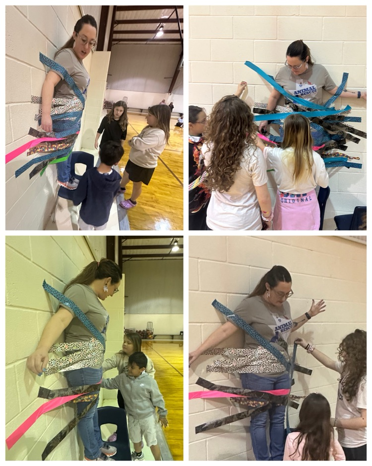 Huge thank you to everyone who sent in their spare change for our Principal's Cabinet Penny Wars fundraiser. 1st and 4th grade won the penny wars! Mrs. Gowens volunteered for the 1/4 team and was taped to the wall this morning. We raised a little over $190.00 for our animal shelter and we will present the money to them next week.